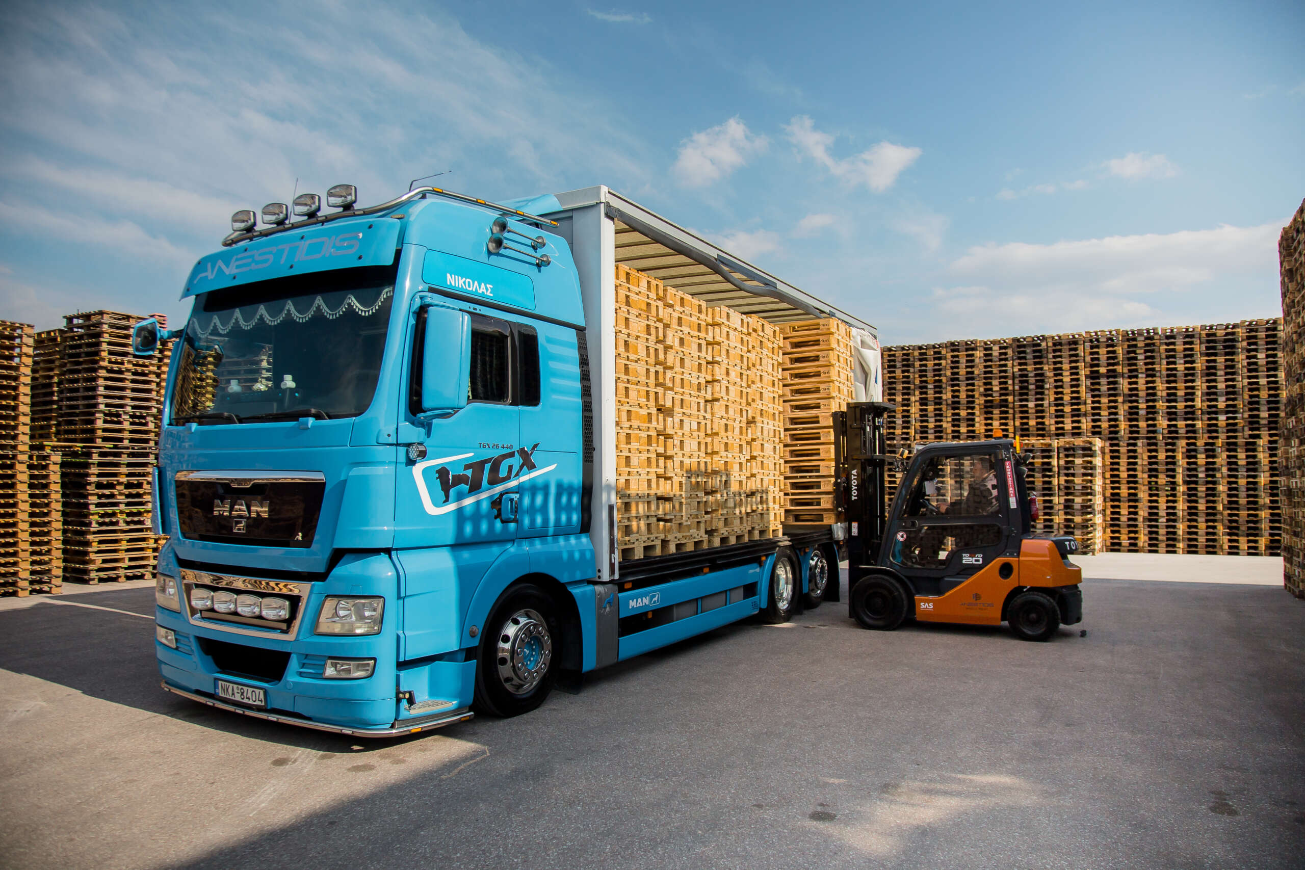 ΜΕΤΑΦΟΡΑ Η εταιρία μας διαθέτει ιδιόκτητο στόλο οχημάτων-φορτηγών με σκοπό την άμεση εξυπηρέτηση και παράδοση των παλετών στις εγκαταστάσεις σας.